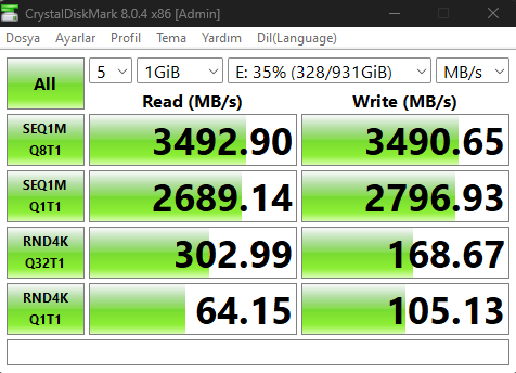 Dosya boyutlarına ve aktarım şekillerine göre onlar. Sıkıntı etme.Arkadaşlar Samsung 970 EVO Plus 1 TB SSD'im var. CrystalDiskMark'tan değerleri ölçtüm. Sonuçlar nasıl iyi mi? Bir de neden 4 seçenek var ve neden en alttakiler daha düşük?