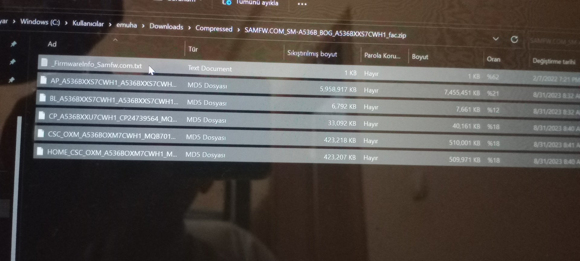 Tar olarak değiştiriyor muyuz dosyaları. Bir videoda öyle yapıyordu.Tamam şimdi buradaki dosyalardan Başı AP BL CP CSC olanları Odin'de gereken kutuculara seçerek yerleştir. Doğru dosyaları seç emin ol.