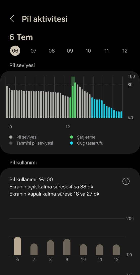 Hocam sizin ekran süreleriniz ne? Ben S20 FE kullanıyorum yaklaşık 1 yıldır günde 5 Saati çıkarıyorum. Günde 2 defa şarj edersem 7-9 saati buluyor.