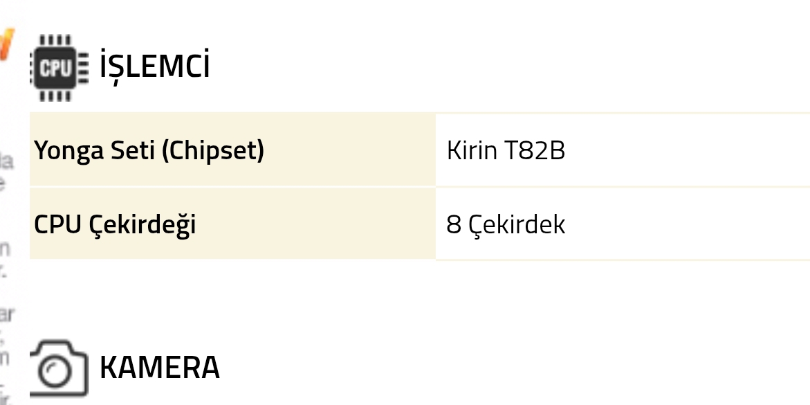 Kirin T82B için doğrulanmış benchmark sonuçlarını bulamadım Huawei / HiSilicon bu işlemcinin performans değerlerini pek paylaşmamış