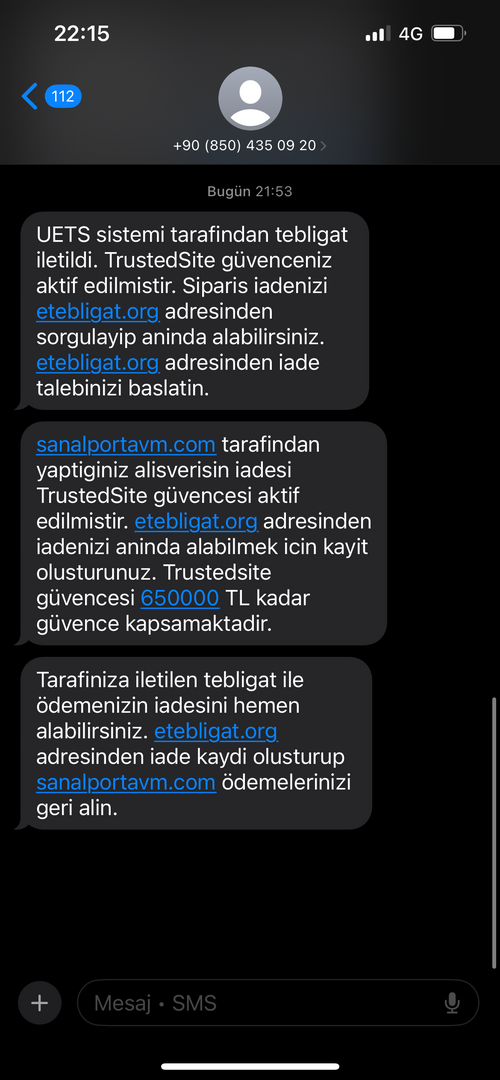 Arkadaşlar. Bu site kesinlikle güvenli değil. Bulaşmayın. Mesajda attığı site resmi site değil. Bahsettiği konuyla ilgili durumun resmi sitesi gov.tr ile bitiyor.