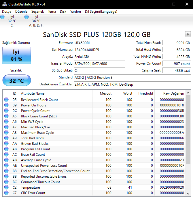SanDisk SSD PLUS sağlığı iyi durumda mı?