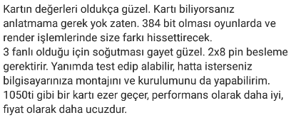 PCI-e 3.0 versiyonu GTX 1050 Ti'dan biraz daha yüksek performans veriyor ve daha yeni bir kart RSR gibi özellikler var ve daha az sıcaklık değerleri var R9 yanıyor resmen.