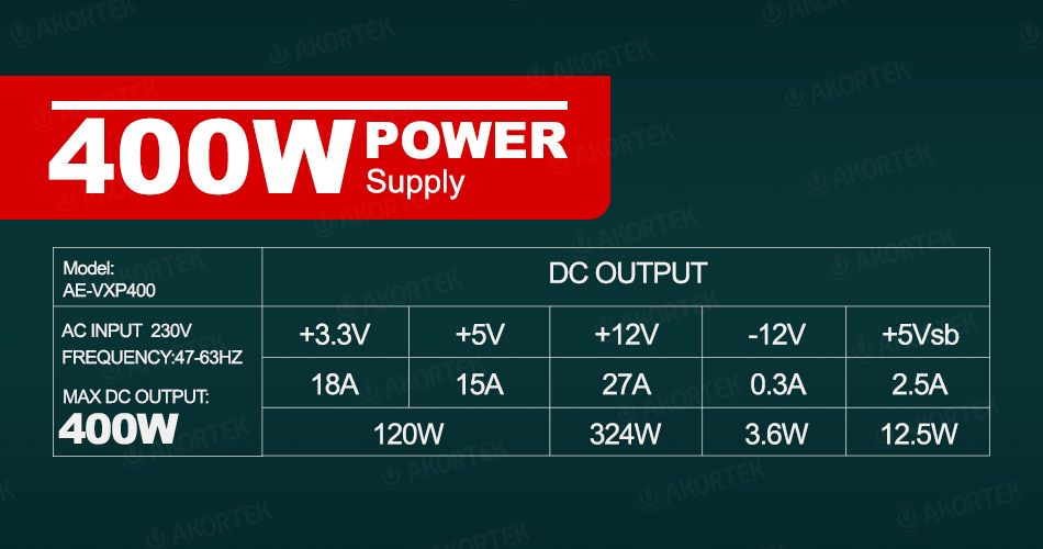 Bu PSU sadece 324W Aerocool VX400W çok kalitesiz bir ürün haberiniz olsun.