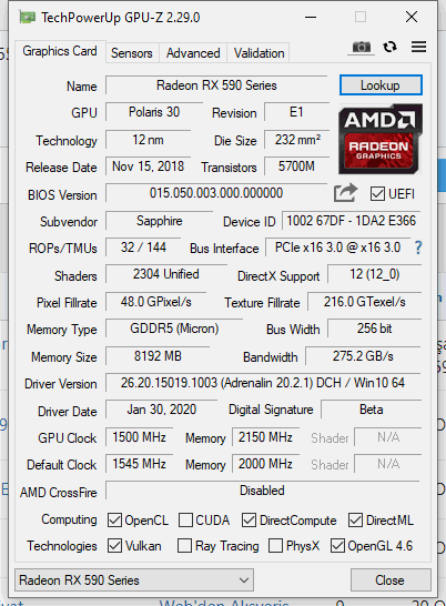 Sapphire RX 590 Nitro+ SE undervolt
