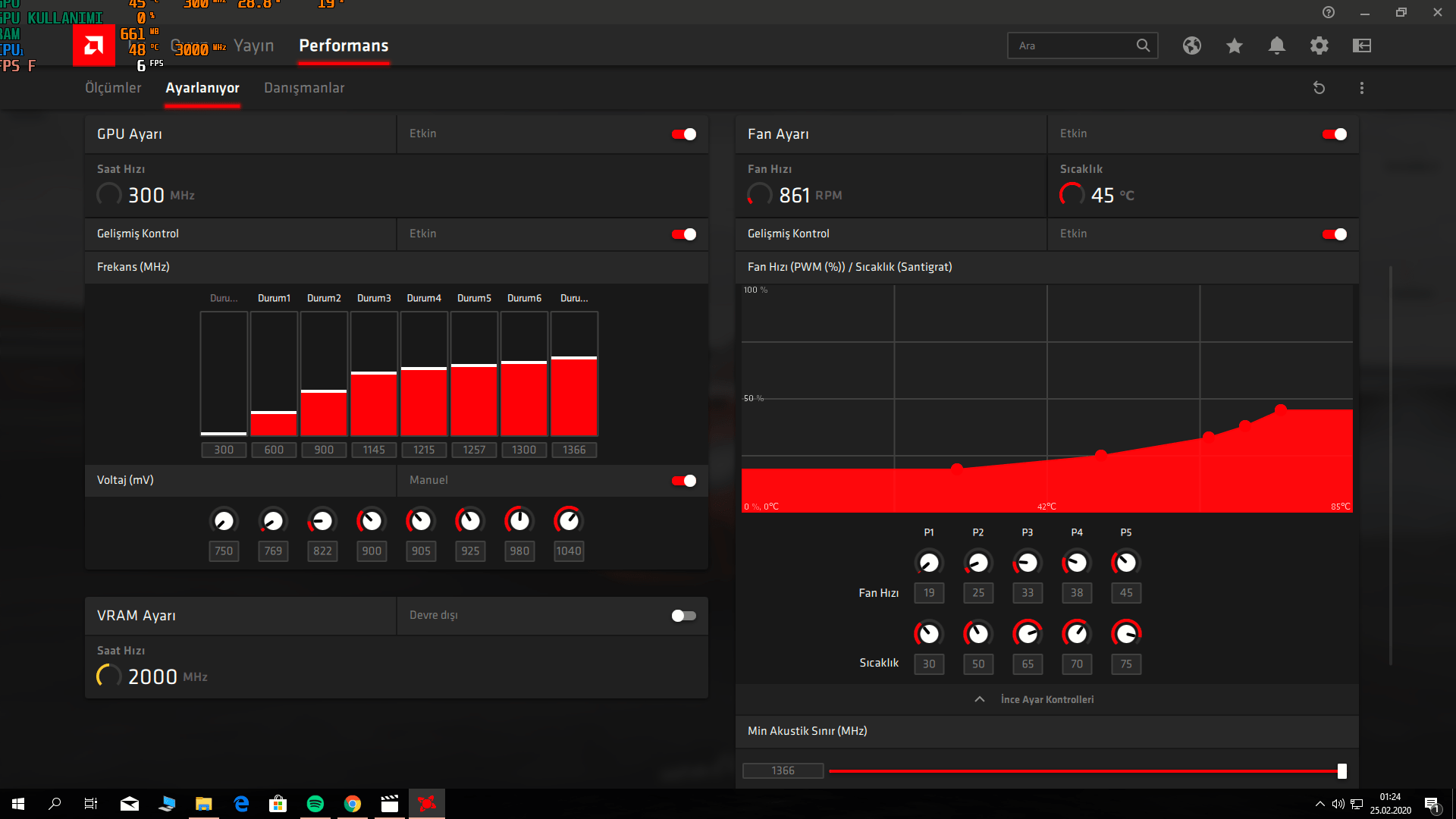 Hocam sizin konunuza bakarak bendede aynı ekran kartı var sapphire rx 580 pulse modeli sizin fan değerleri pek hoşuma gitmedi ancak voltaj değerlerini ekran kartıma aynen uyguladım tomb raider a girdiğimde direk attı error verdi ama yavaşça düşürerek kendi değerlerimi buldum 83 dereceye çıkan kart %35 fanda 70 de kalıyor benimde değerlerim bu şekilde denemek isteyen arkadaşlar için atayım.