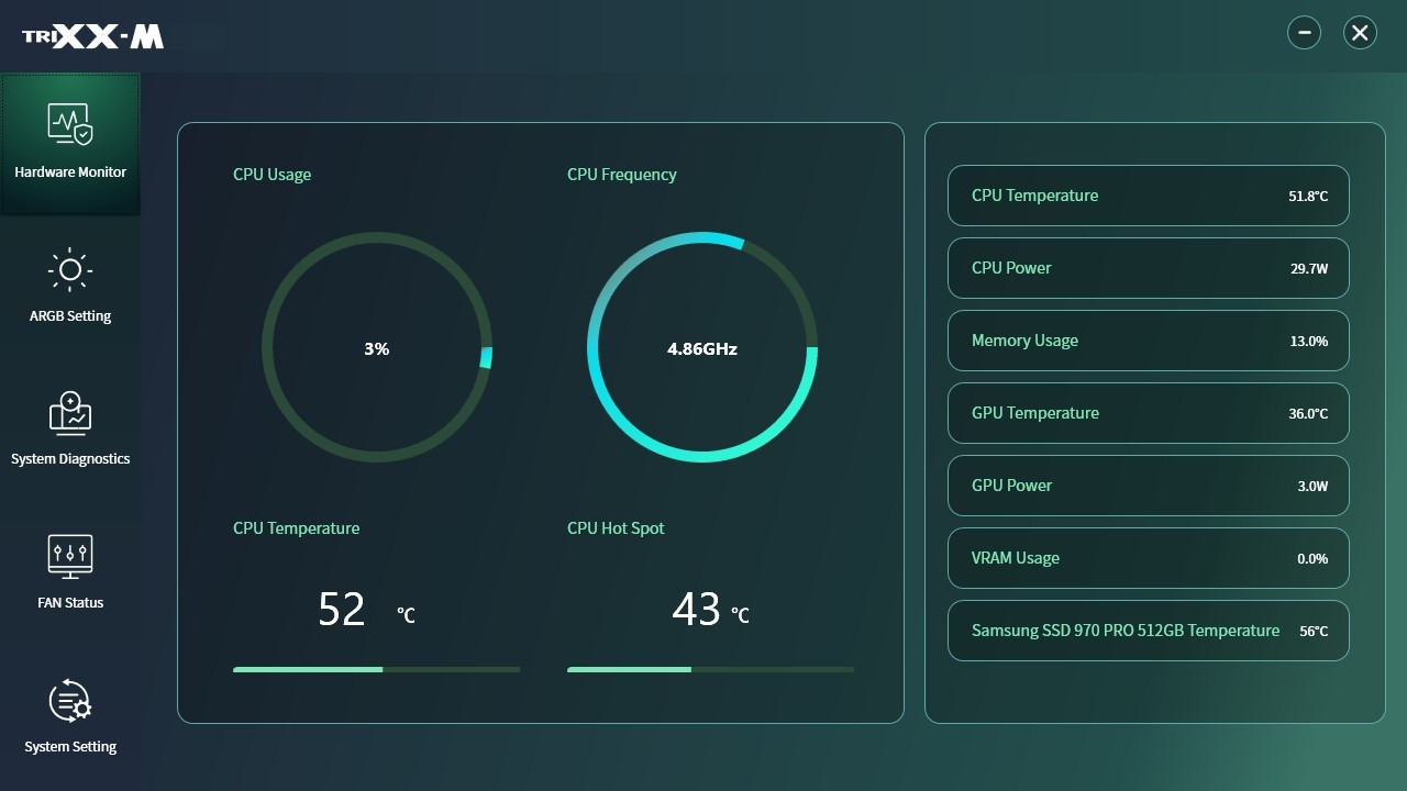 Sapphire TriXX-M - Sapphire anakartlar için donanım izleme, sistem ayarı ve ARGB kontrolü sunan bir yönetim yazılımı.