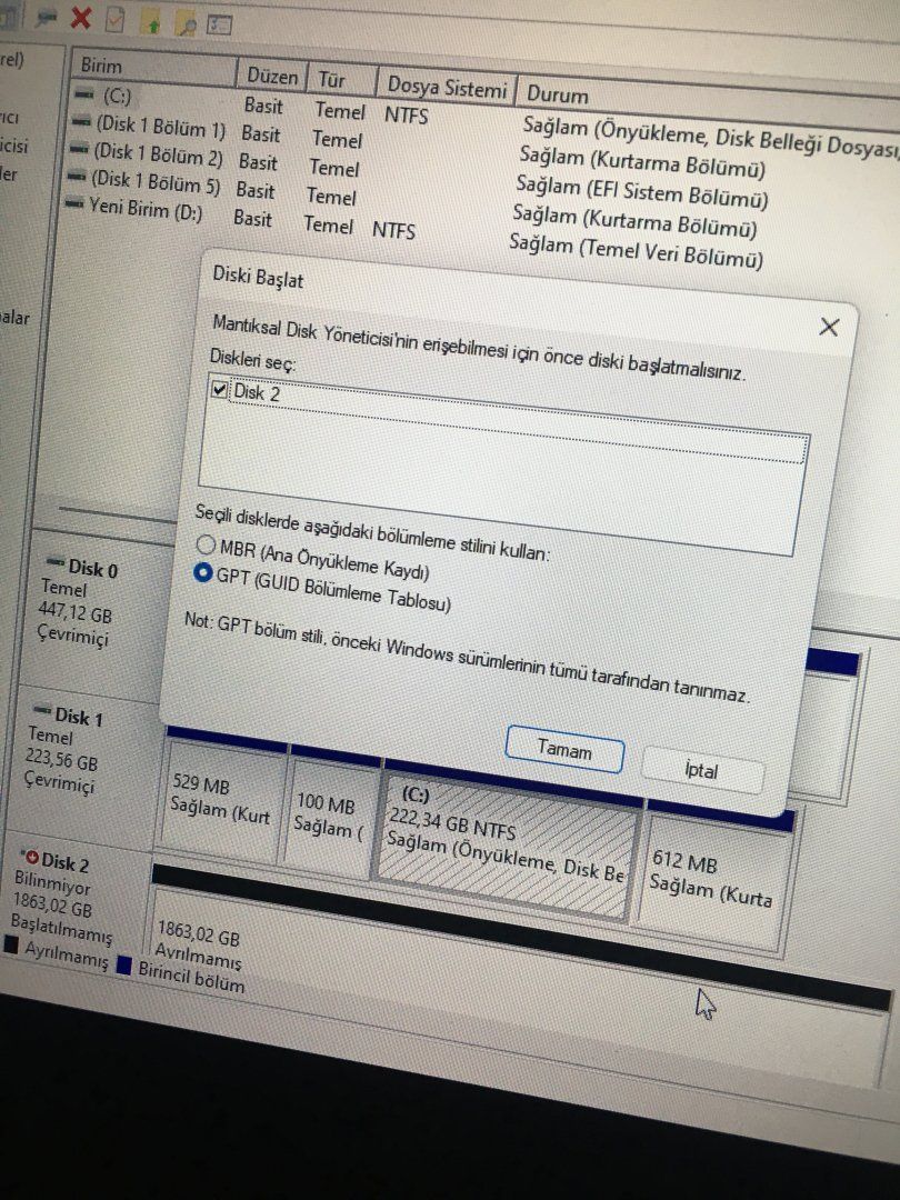 Ekran kartını sökmeden taktım şimdi biçimlendiriyorum diski.