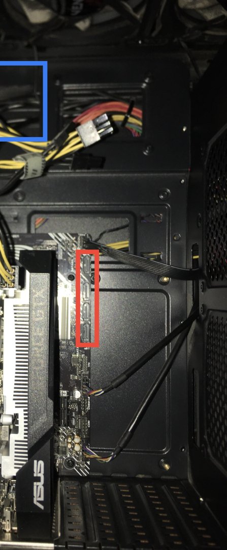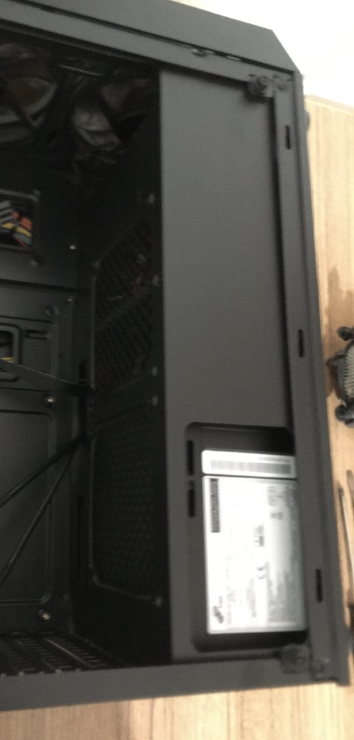 SATA güç kablosu PSU'ya bağlı değil mi? PSU etrafı ilk resimdeki gibi kapalı, o yüzden (anladığım kadarıyla) arka kapağı mecbur açacağım. O parçayı çıkartıp, SATA güç kablosunu dışarı çıkarabilmek için.