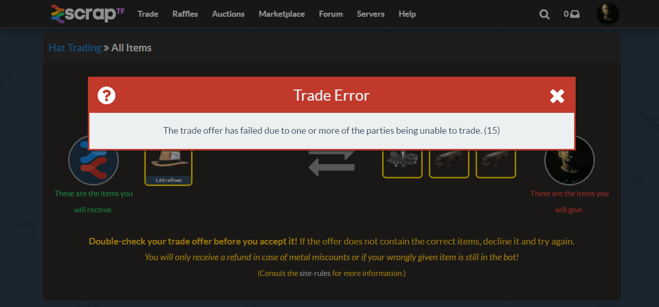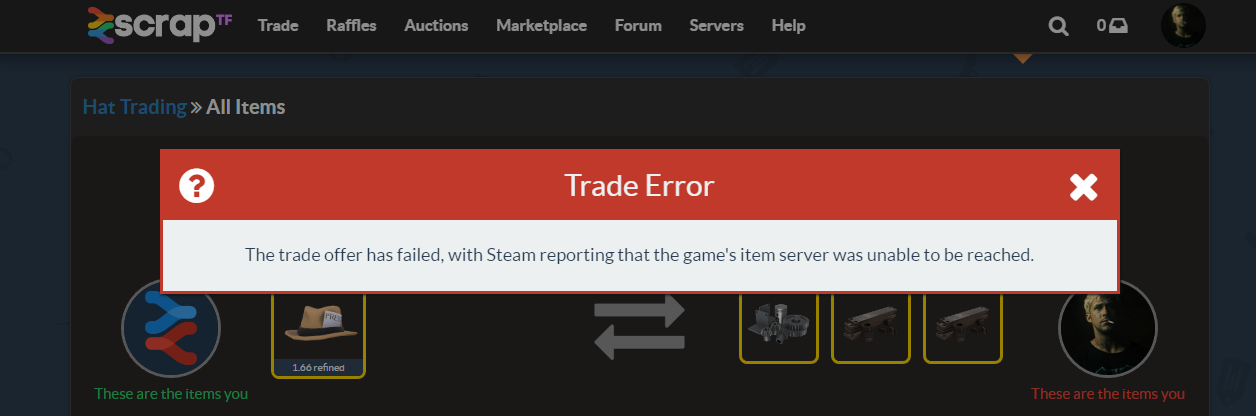 Scrap.TF her eşya almak istesem trade failed diyor. Steam trade URL yazdım fakat olmuyor.