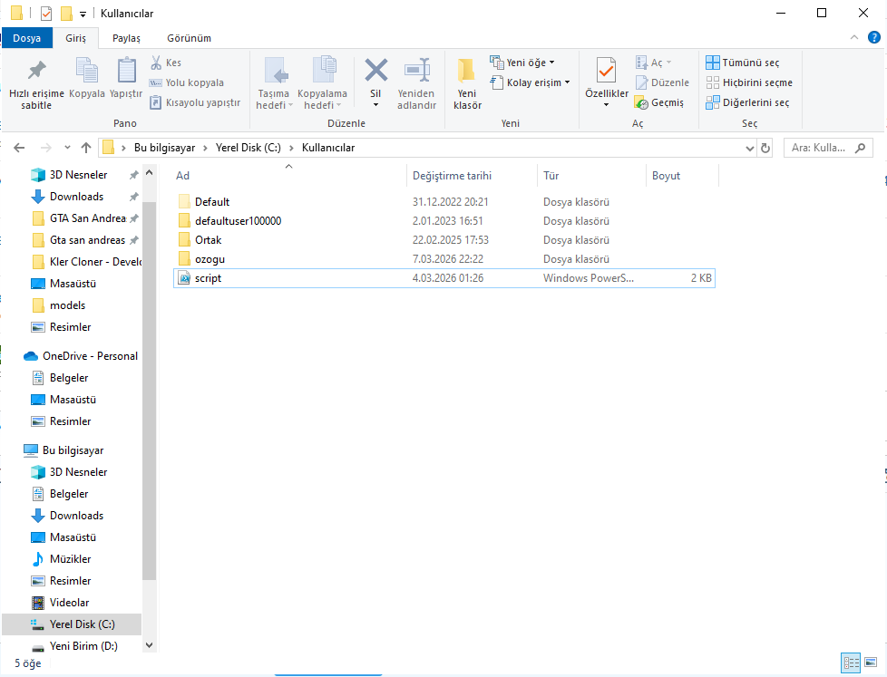 Kullanıcılar kısmındaki dosya virüslü müdür arkadaşlar. Sağ tıklayıp düzenli dediğimde PowerShell loading diye bir şey çıktı, sonra bir şey açıldı ama ben hızlıca Görev Yöneticisi'nden kapattım. Virüs müdür bu arkadaşlar?