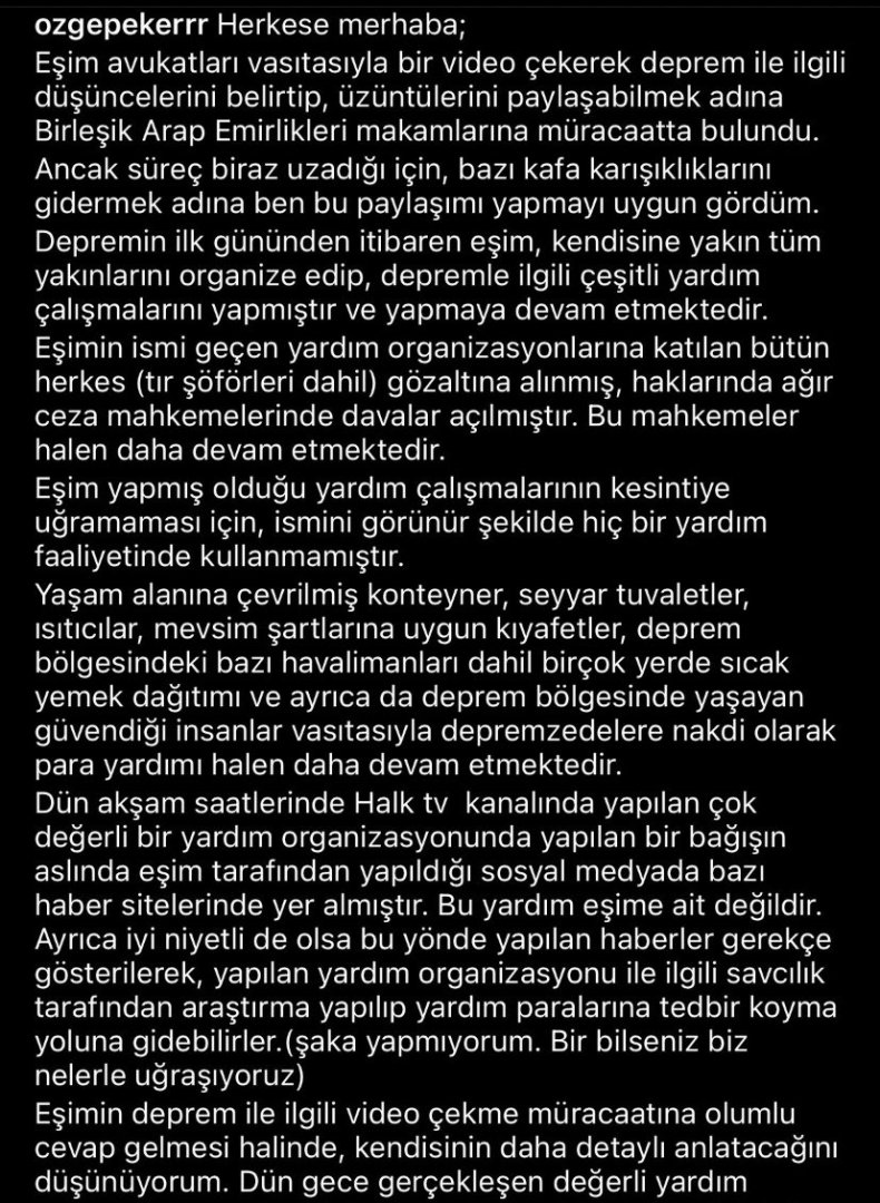 Daha önce AHBAP'a farklı isimlerden bağış yaptığını Özge Peker duyurmuştu. Savaş Ateş imalı bir isim. Yanacak ortalık.