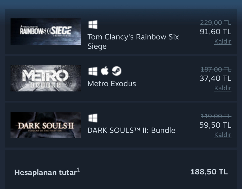 Eğer arkadaşlarınızla oynamayacaksanız R6 almayın derim. Arkadaşsız tadı çıkmaz. Metro Exodus gayet güzeldir ancak ondan önce 2033 ve Last Light oynamanızı öneririm. 3 lira gibi bir fiyatları vardı. Dark Souls konusunda bilgim yok.