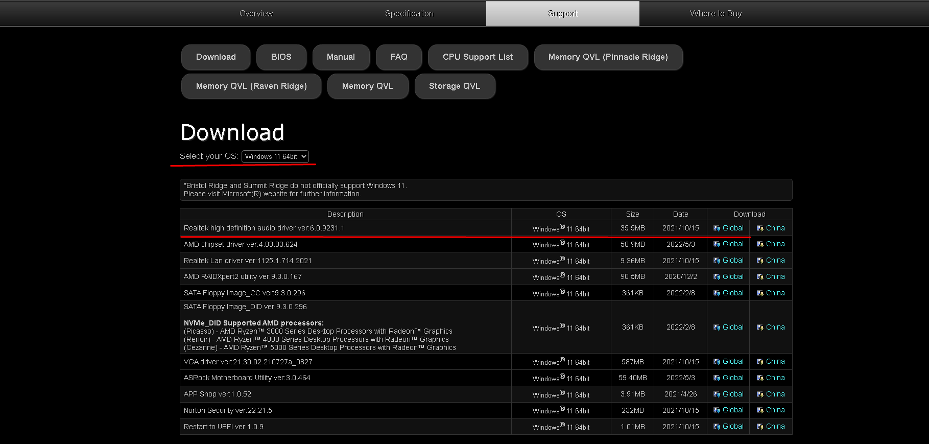 1.3- "temel kart üreticisi" ve "temel kart ürünü" adından, resmi anakart sitenizden driverınızı bulun.