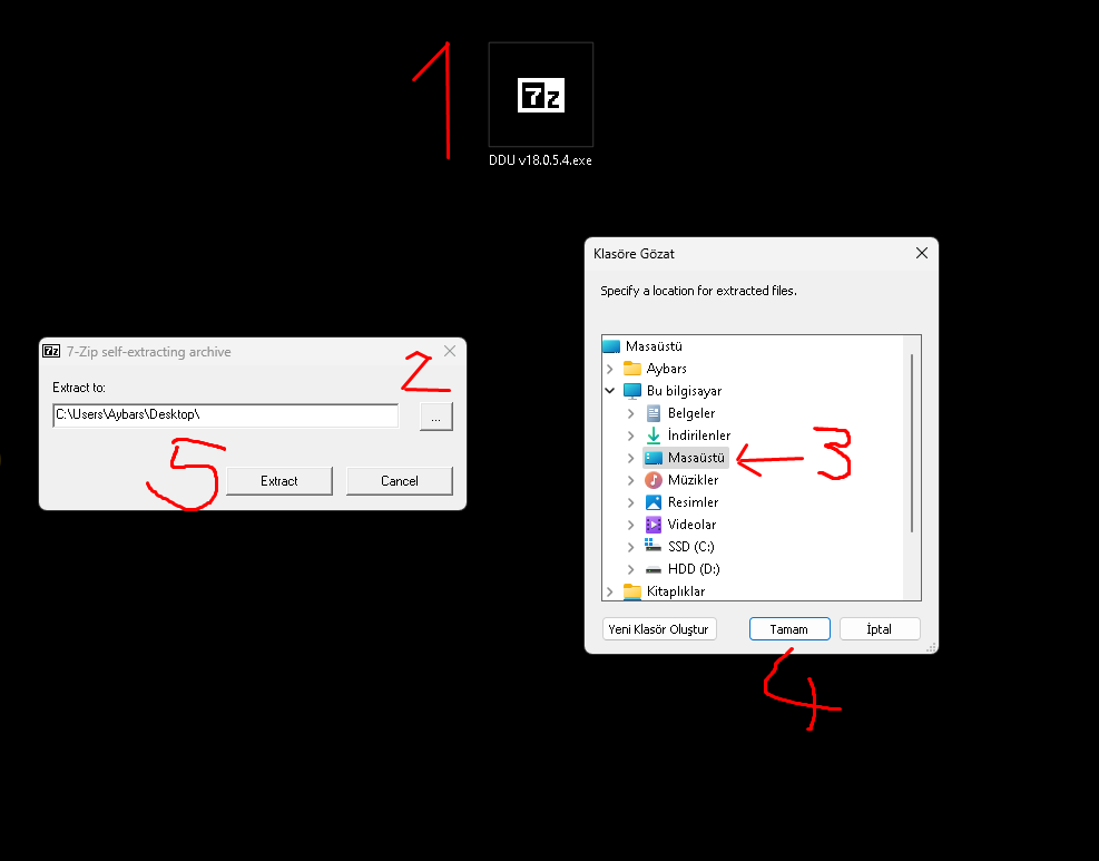 Dosyayı indirdikten sonra çift tıklayın ve çıkarmak istediğiniz yeri seçin. Ben masaüstü diyorum.