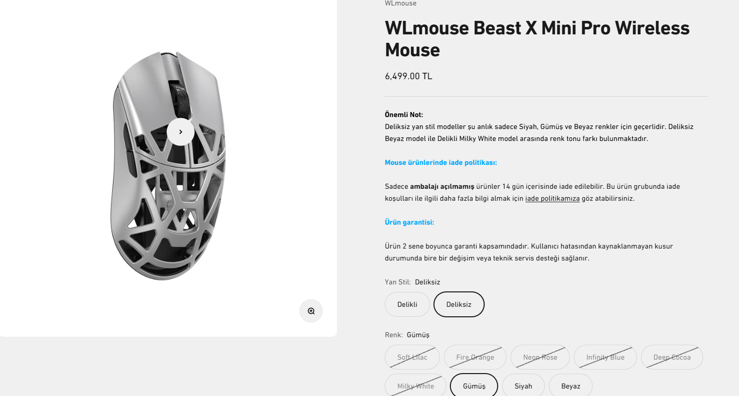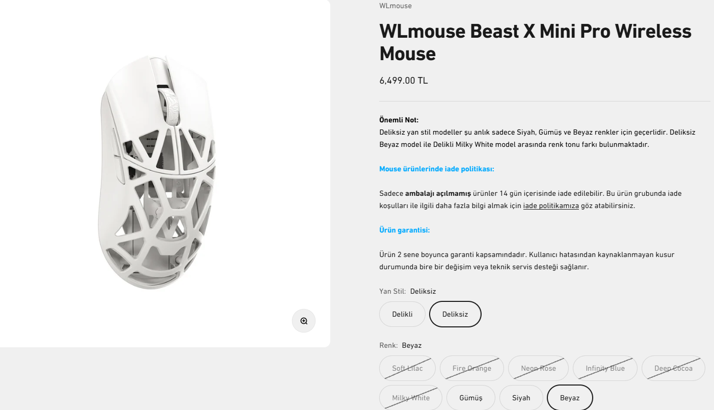 Pwnage Trinity CF Wireless Mouse ve WLmouse Beast X Pro var. Bugün Hitscan Hyperlight da ön siparişe girdi. Bunlar aklımda olan mouseler. Asıl konu ise setupta hangisinin güzel duracağı. Masanın üstü ahşap, bacakları ve kulpları siyah metal, masanın alt çekmeceler ise beyaz. Klavyem MAD68 beyaz, kulaklıklarım ise Cloud 2 ve Wraith Sense IEM Pro beyaz. Mouse pad SteelSeries QCK medium. Gri ve beyaz Beast X ya da Silver pwnage. Bu arada claw grip ve 17.5 cm el ölçüm var. Düz Pro modelmi yoksa mini Pro modelmi elime olur? Önerilerinizi bekliyorum.