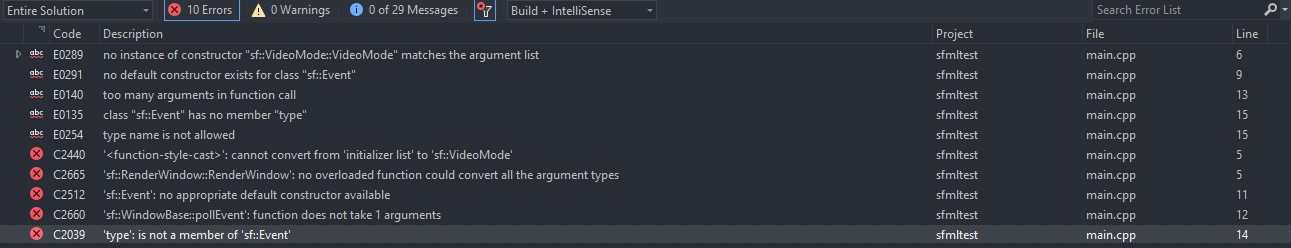 Sfml kütüphanesininde yazılan kod hata veriyor