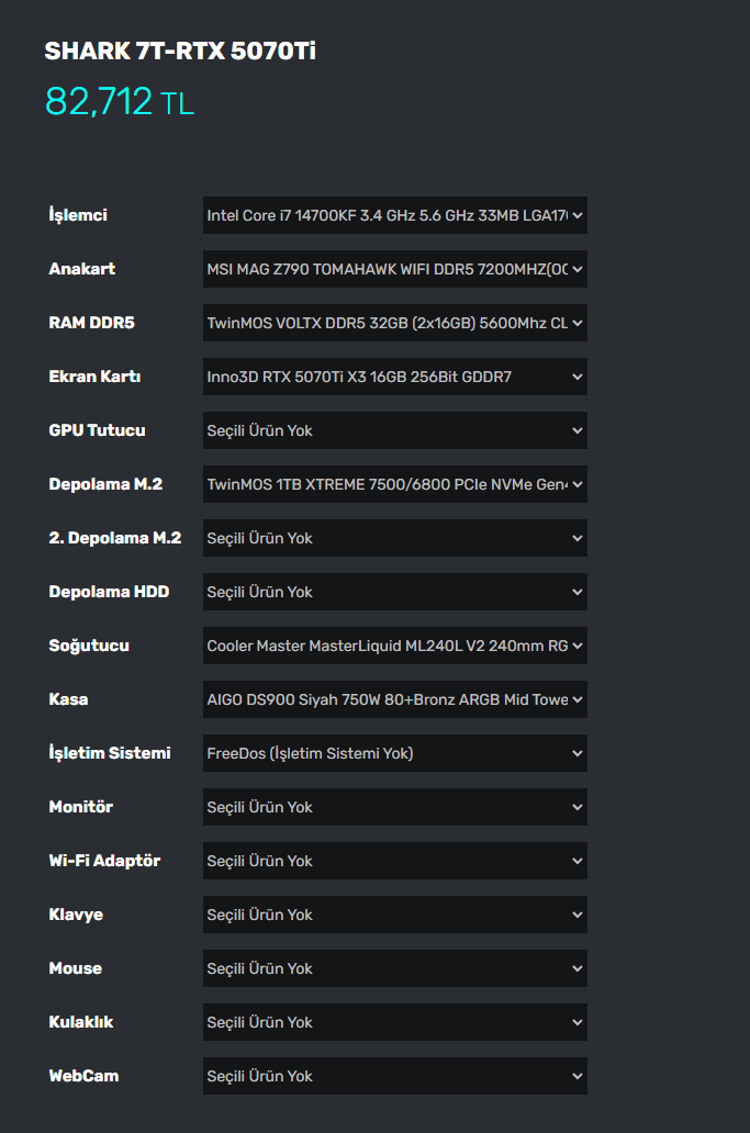 Shark 7t-RTX 5070 Ti sistem alınır mı?