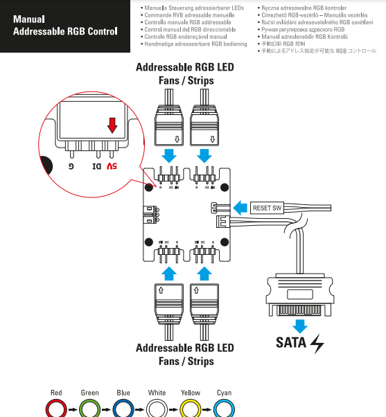 Hepsi dolu olmak zorunda değil. 3 pin olanlara Kasadaki ledden ve fandan çıkan ARGB kablolalarını takacaksınız, 2 pin olan yerede kasadaki reset tuşunun kablosunu takacaksınız. Kontrolcüden çıkan sata kablosunuda sata power kısmına takcaksınız.