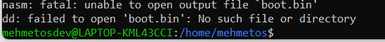 Merhaba, Shell script nasm: Fatal: Unable to open output file 'boot. Bin' hatası alıyorum hatanın çözümü nedir ekran görüntüsü ve hata veren Shell script kodunu buraya bırakacağım.
