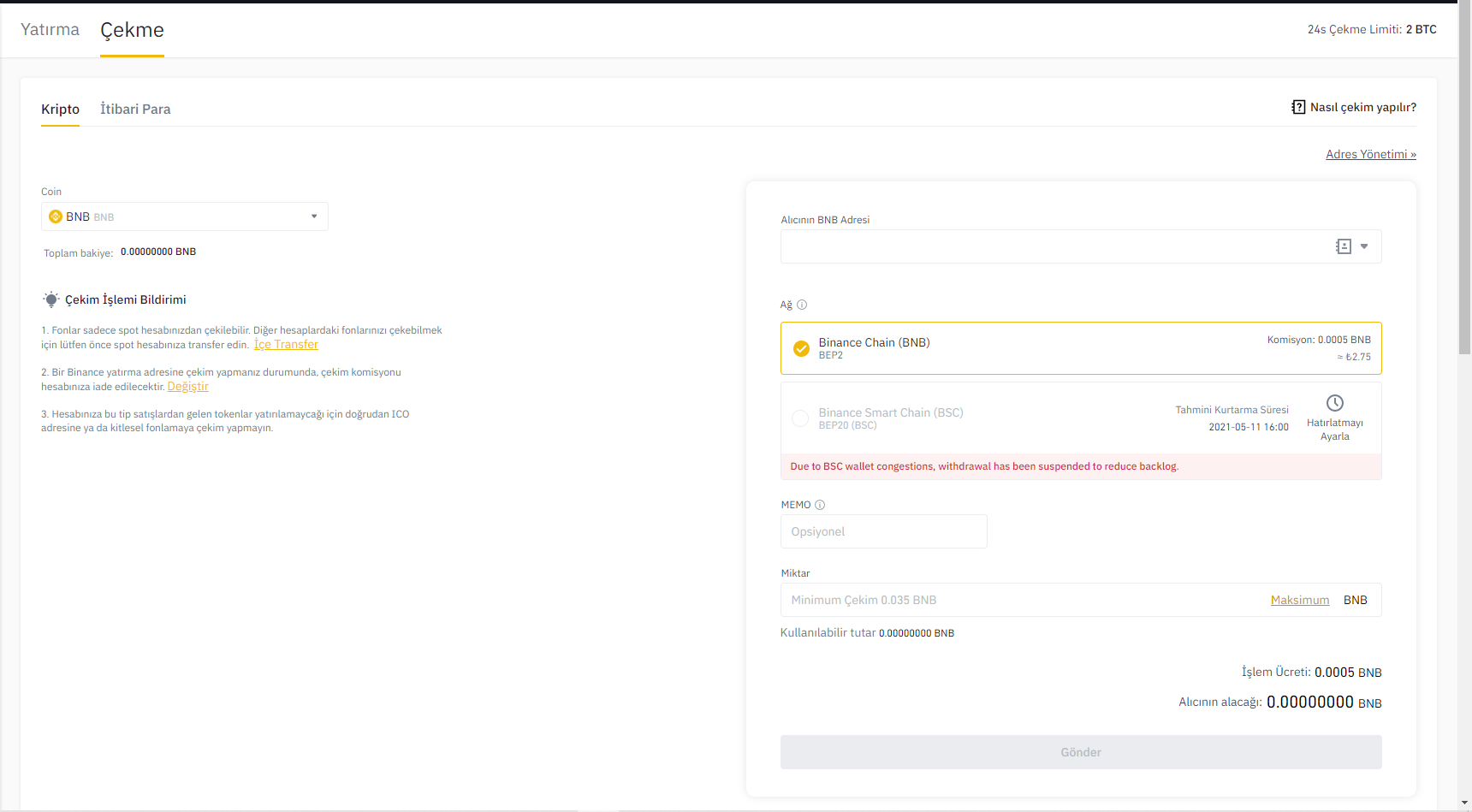 Az önce açılmıştı sonunda transfer ettim Bnb'leri. Gece başlarım ben coinleri almaya.