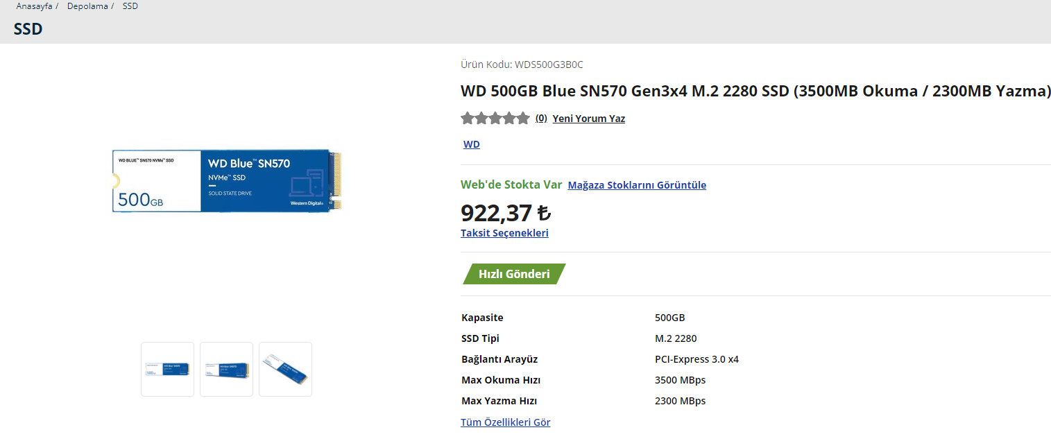 WD 500GB Blue SN570 Gen3x4 M.2 2280 SSD (3500MB Okuma / 2300MB Yazma)Yeni sipariş verdim geldiği gibi kargolarım istediğiniz yere kargo ücreti almıyorum. Fiyat 580TL Sıfırı 850 TL civarı. WD Blue SN570 SSD (500 GB) WD Blue SN570 SSD WDS500G3B0C detaylı özelliklerini inceleyin, benzer ürünlerle karşılaştırın, ürün yorumlarını okuyun ve en uygun fiyatı bulun. www.epey.com İtpoya'dan alınmıştır. Sipariş onay mesajım. Gulmeyin aga satis yapiyoruz.