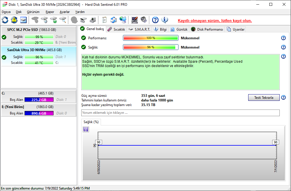 Ana SSD'mde 1 yılda 35TB veri yazmışım: