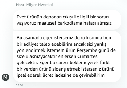Hocam bazen Amazon o duruma düşüyor maalesef. Yine şu son zamanlarda bana yaşatmadı ama sırf bir ara laptop 3 gün erken gelsin diye Hepsiburada kullandım. Adamlar 4 gün sonraya falan teslimat gösteriyordu. Sanırım geldiği depo veya yere göre değişiyor. İstanbul'da çok hızlılar daha bu akşam kargom geldi sabah sipariş etmiştim. Böyle hizmet görünce insan mutlu oluyor![]()