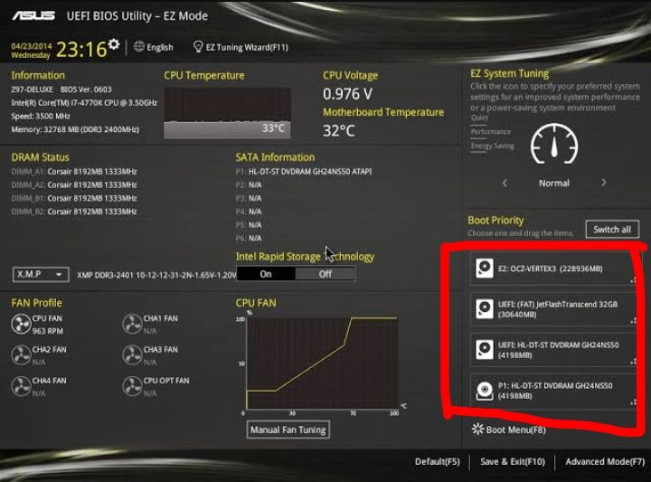 Bir de normal zamanda BIOS'a girdiğimde boot priority kısmında SSD'im gözüküyordu.