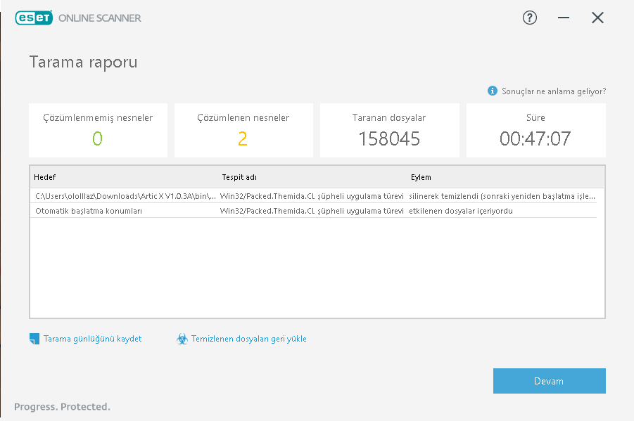 Ayrıca ESET ile tam tarama yapar mısın? Kurulum gerektirmez tek seferlik tarama.