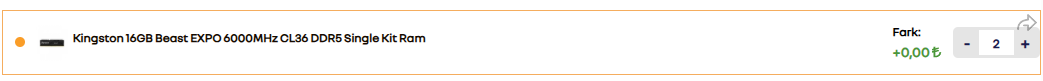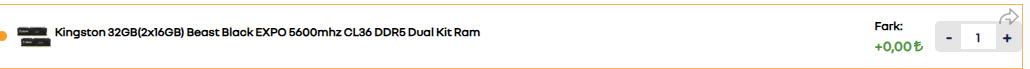 Merhaba, sistem özelleştirirken "Kingston 16 GB Beast EXPO 5600 MHz CL36 DDR5 Single kit RAM" olarak 2 adet seçtiğimde "Kingston 32 GB(2x16 GB) Beast Black EXPO 5600MHz CL36 DDR5 Dual kit RAM" olan seçeneğine oranla fiyat düşüyor. Bir farkı var mı? Varsa aydınlatır mısınız? Teşekkürler.