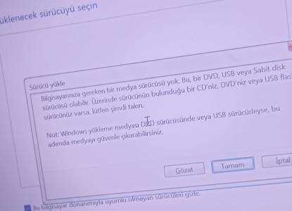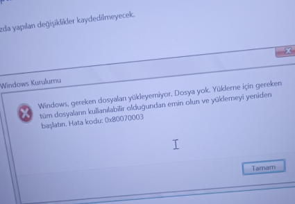 Selamlar herkese, Windows yükle kısmı geldi gerekenleri yaptım dolmasını bekliyorum yeniden başlattı ama yine aynı yere attı 2-3 defa. Tekrar denedim fayda etmedi ondan sonra USB belleği çıkardım şöyle hatalar karşıma çıktı.