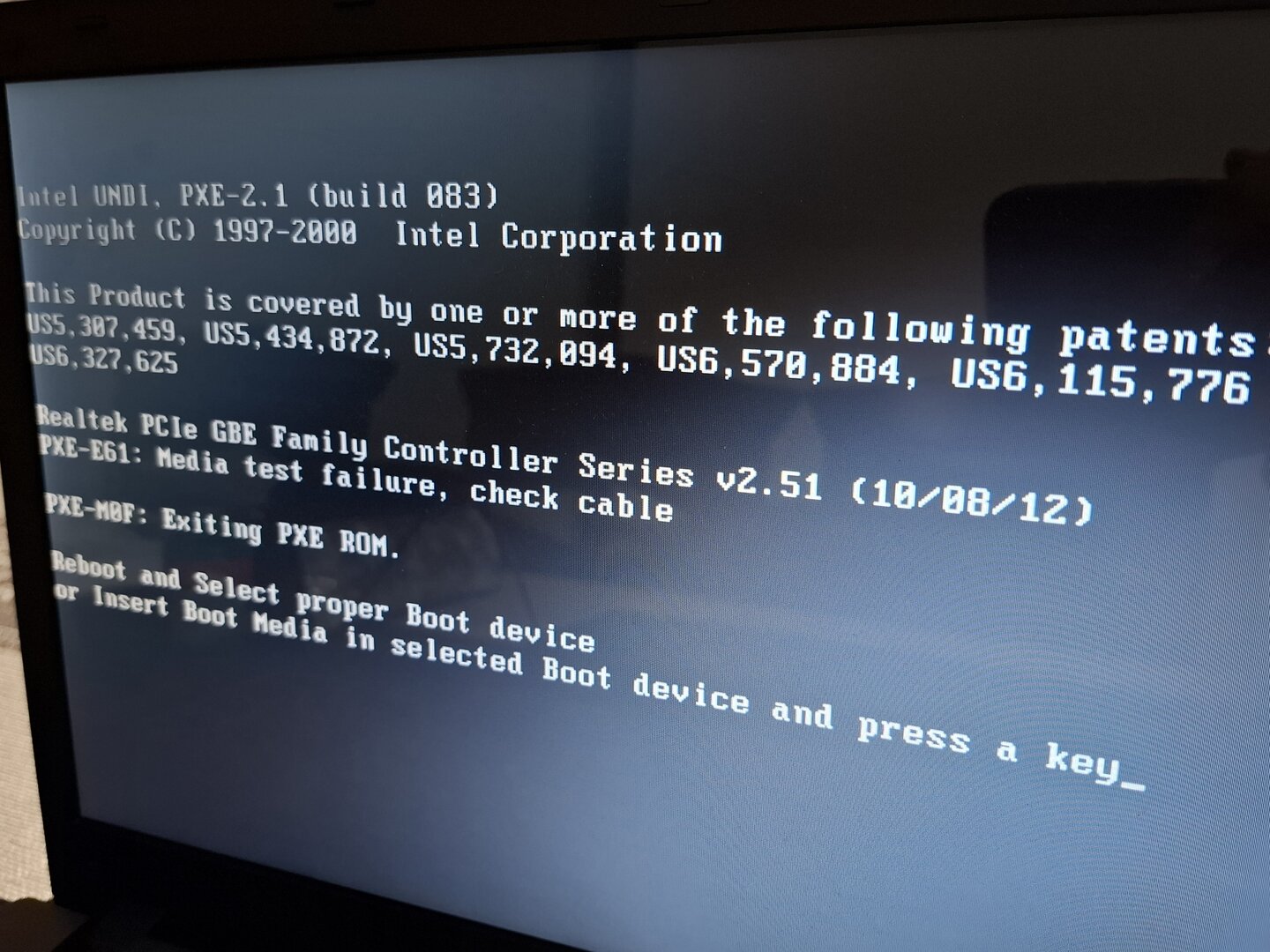 Eski bilgisayarımda 'reboot and select proper boot device or ınsert boot Media in selected boot device and press a key' ve 'PXE-E61: Media test failure, check cable' hatalarını alıyorum.