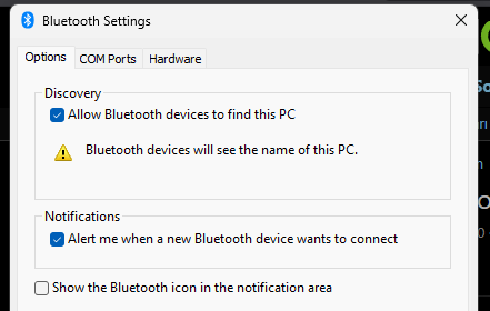 Windows ayarlarından Bluetooth ayarlarına gel > daha fazla Bluetooth seçenekleri >