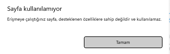 Windows 11 kullanıyorum arama kısmına çekirdek yazılım yazınca sonuç alıyorum ama tıklayınca "sayfa kullanılamıyor-eriştiğiniz sayfa, desteklenen özelliklere sahip değildir ve kullanılamaz." diyor.