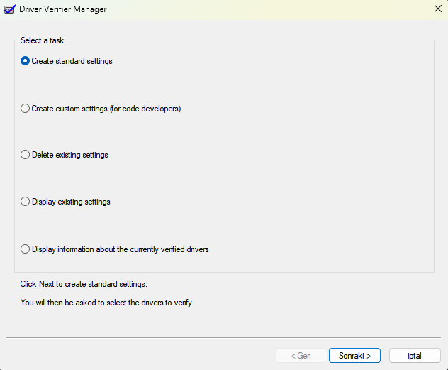 hocam dediğiniz yaptım fakat bu sefer şu iki hatayı verdi k mode olan bide system service exepcition. az önce hata vermiyordu baya bi uzun süredir sizin işlemden sonra verdi ama oyuna girince veriyodu hatalarıWin +R tuşlarına basın ve verifier.exe yazıp Enter'a basın. Çıkan menüde "Delete existing settings" seçin ve "son"u tıklayın. PC'ye restart atıp deneyin.