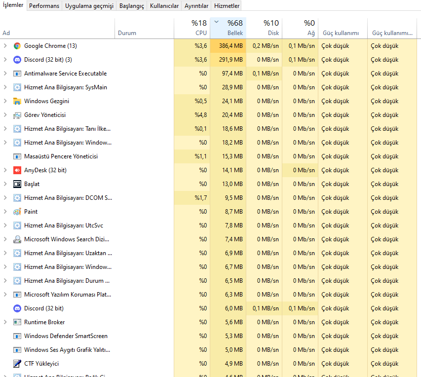 Ayrıca arka plan işlemleri fazla 30-40 kadar işlem var.