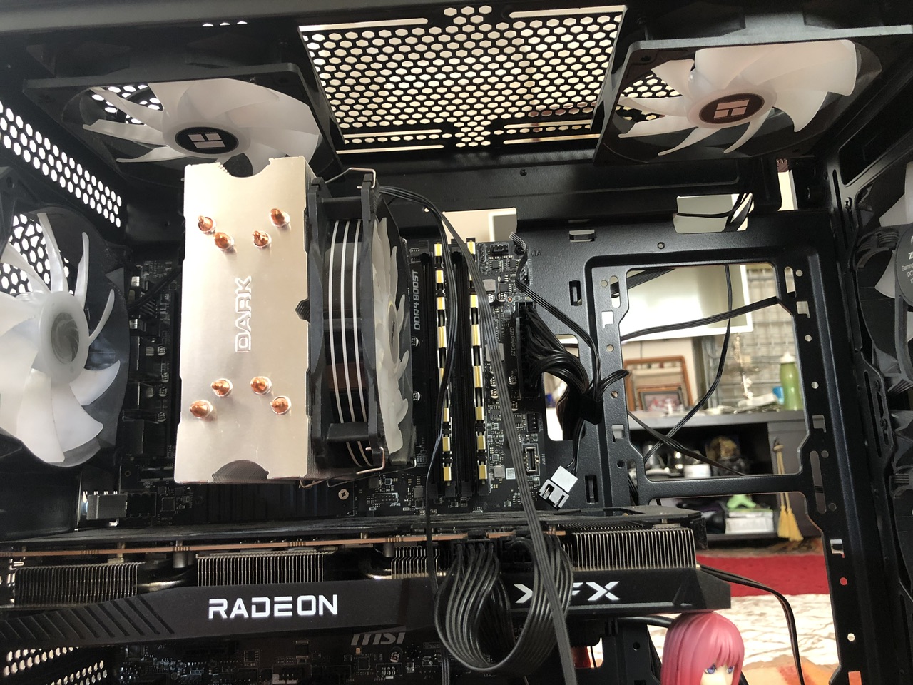 Üstteki fanlardan 3 tane var 2 tanesini dediğiniz gibi karşı tarafa takacağım 1 tanesi üst tarafta kalsın diyorum işlemcinin üstüne gelen pompanın boruları aşağıya gelse çok sorun olmaz herhalde.