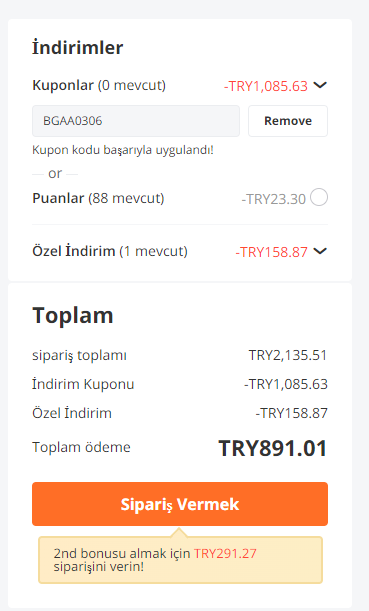 İlk siparişten verilen, 2. siparişte geçerli indirim ile birlikte kupon kodunu da birleştirince şöyle bir fiyata geliyor 2. klavye. Onu da satmak için alabilirsiniz.