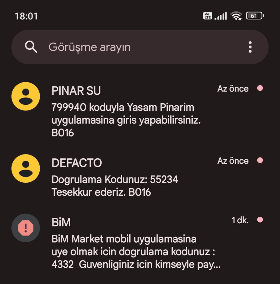 Merhaba, kullanmış olduğum Xiaomi marka telefonuma, kullanmadığım ve kayıt olmadığım markalardan doğrulama kodları geliyor. Sadece bana değil diğer 3 arkadaşıma da aynı şekilde doğrulama kodları geliyor. Desteklerinizi bekliyorum.