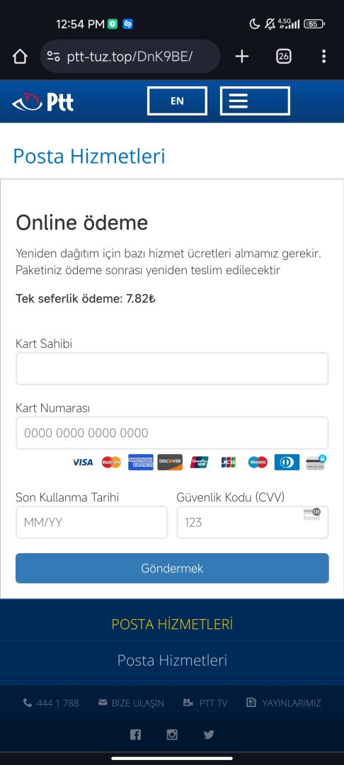Normalde bu tarz şeylere hiç aldanmam ama birden boşluğuma geldi çok dikkat etmedim verilen bağlantıya girdikten sonra beni PTT'nin benzer bir sitesine attı.