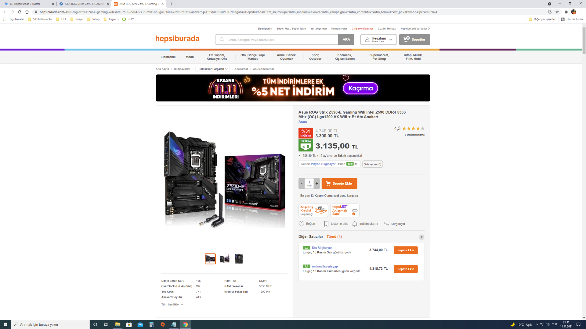 Birkaç gündür takip ettiğim anakartın fiyatı 3.000 TL'ydi ve Hepsiburada'dan sepette %5 indirim bildirimi geldikten sonra fiyatını kontrol ettiğimde %5 fiyat arttırılmış olup sepete eklenince %5 indirim duyurusundan önceki fiyata tekabül etmekteydi. Bu gibi etkinlikler Türk esnafının özeti diyebilirim herhalde. Dolar artınca fiyatları arttırıp, düşünce düşürmemeleriyle de ünlüdürler.