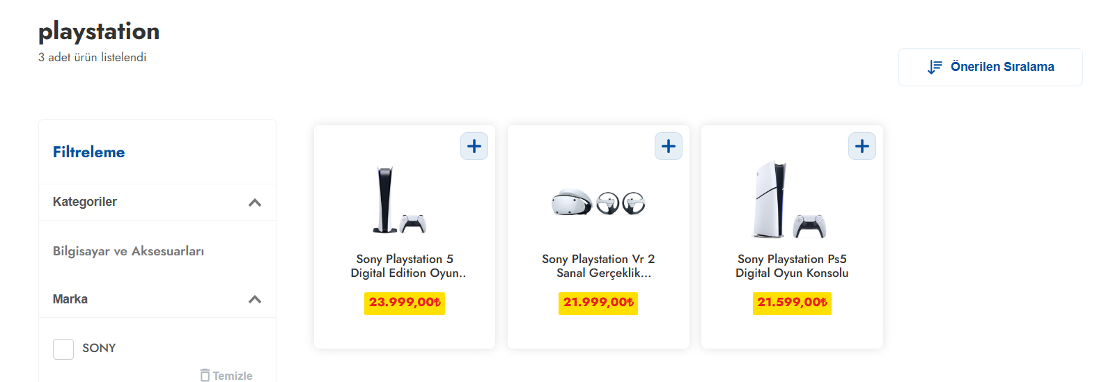 En ucuz PS5 Slim Digital Edition 1 TB SSD Oyun Konsolu fiyatları için 4 taksit ve indirimleri kaçırma! PS5 Slim Digital Edition 1 TB SSD Oyun Konsolu özelliklerini incele, 19.299,00 TL'den başlayan fırsatları yakala!