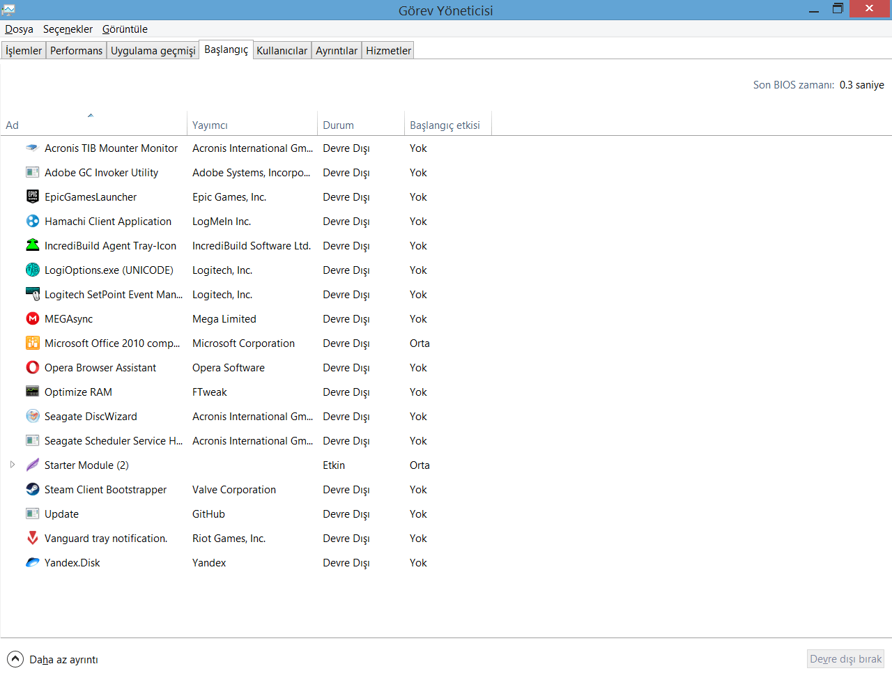 Konu başlığı biraz saçma gelebilir, ama son BIOS zamanıma baktığım zaman anormal derecede az. Bu ilk değil hep böyle en fazla sanırsam 0.4 saniye gördüm. Windows'un kurulu olduğu diskin modeli Seagate 2TB Barracuda 256MB 7200RPM, okuma yazma testlerini atacağım, eğer hard diske bakacak olursanız eğer diye ürün kodu ST2000DM008. anakart modelim ECS H81H3 serisinden m4/m7 vb modelleri mevcut ama tam olarak bilmiyorum. Bilgisayarın açılış süresini gösteren bir video çektim buradan ulaşabilirsiniz.