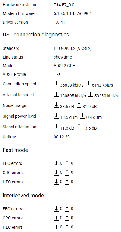 Fakat geçen ayın faturasında sadece ADSL olan paketime (Net Avantaj) dair ücretlendirme vardı. Yani VDSL paket hiçbir şekilde tanımlanmamıştı. Sırf bu yüzden bugün Netspeed'i arayıp bu durumu sormak istedim. Müşteri temsilcisi "Şimdi geçiş yapabilirsiniz, isterseniz 35 Mbps paket ile deneme yapalım" deyince ben de 35 Mbps paket tanımlanmasını istedim. Tanımlama istedikten 1-2 dakika sonra DSL sinyali gitti ve birkaç saniye içinde geri geldi. Modem arayüzünden hat değerlerine baktığımda nihayet 35 Mbps hızın tanımlandığını gördüm. Aynı şekilde Speedtest'te de 35 Mbps hızı alabildiğimi gördüm.