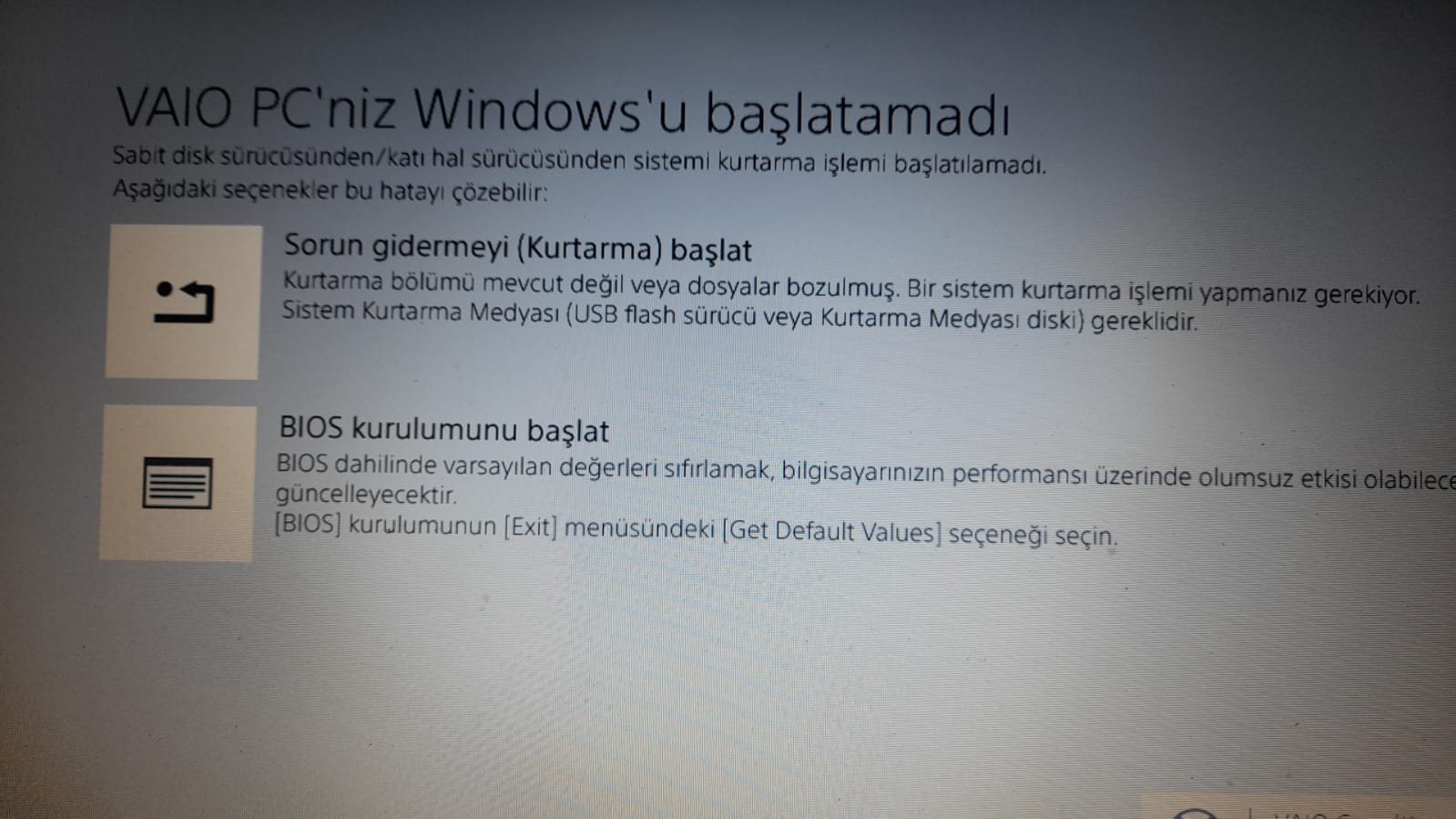 Eski Sony laptopun hard diski bozulmuştu. Farklı bir hard disk taktım sorun gidermeyi başlat diyorum yine aynı sayfa geliyor çözüm önerisi olan var mı?