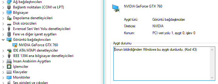 Ekran kartı sürücülerini silip tekrar yükledim sorunum devam etti. Ben de format attım ve bu hatayla karşılaştım ne yaparsam yapayım çözemedim.