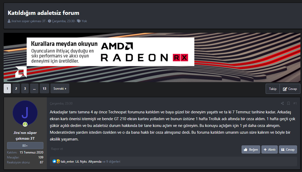 Bu arkadaş Donanım Arşivi Forum'unda "Katıldığım adaletsiz forum" diye bir konu açmış, çok komik bir arkadaş cidden. Bir de "Ne yaptım ki ya?" falan diyor.