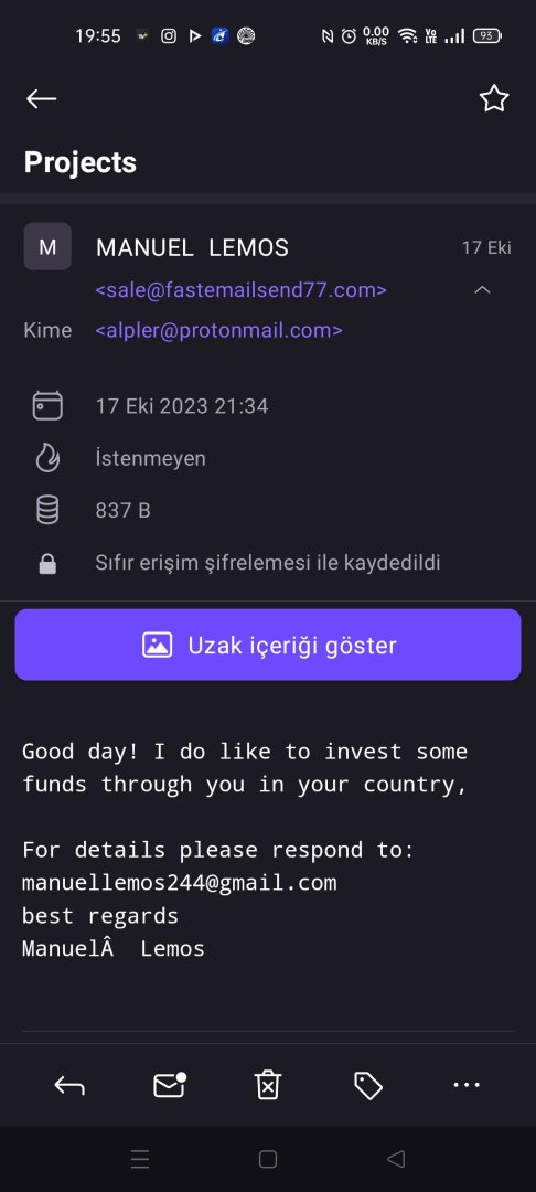 Açtıktan sonra sadece iki sitede kullandığım mail adresime sale@fastemailsend77.com tarafından aşağıdaki mail gönderilmiş: