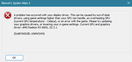 Büyük umutlarla satın aldığım Spider-Man 2 oyununu bir süre oynadıktan sonra bana bu şekilde hata vermeye başladı ve oyuna asla giremiyorum.